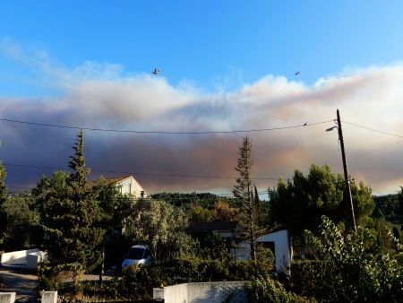 Besondere WetterbeobachtungenAuch im August überall Waldbrände. Besonders verheerend südlich von Carcassonne bei Montirat - mehr als 1100 ha und dicke schwarze Rauchwolken über Thézan-des-Corbières.