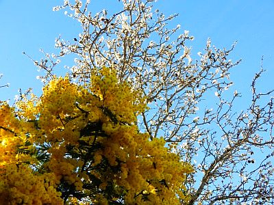Pfirsich, Mimose, Mandel und Aprikose blühen |