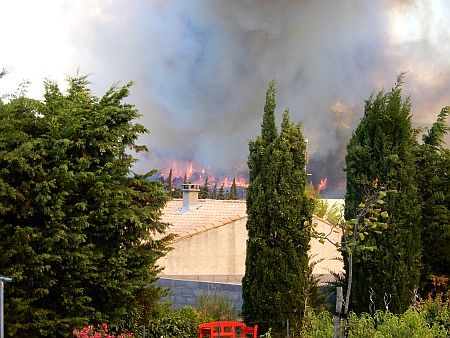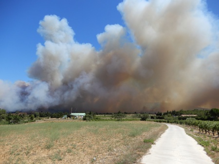 Besondere WetterbeobachtungenVerheerende Waldbrände überall, auch in Thézan-des-Corbières im Bois de la Pinède und den angrenzenden Weinfeldern.